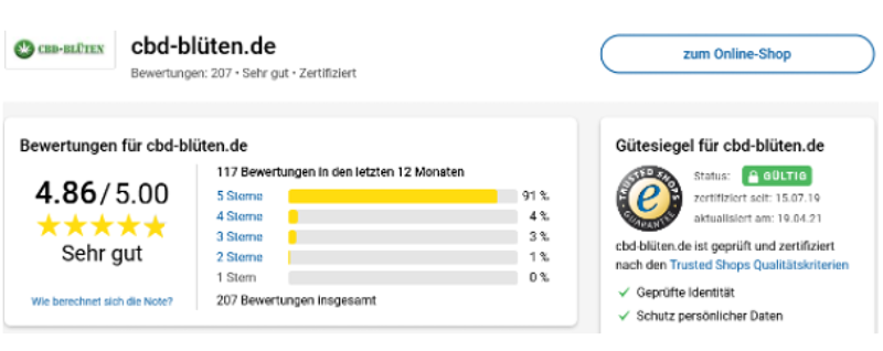 So haben Nutzer beispielsweise mit dem Anbieter „cbd-blüten.de“ bereits sehr gute Erfahrungen gemacht.
