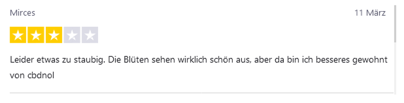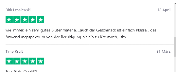 Solche Kommentare sind für Dich schon einmal ein hilfreiches Kriterium dafür, zu wissen, welche CBD Blüten gut sind.