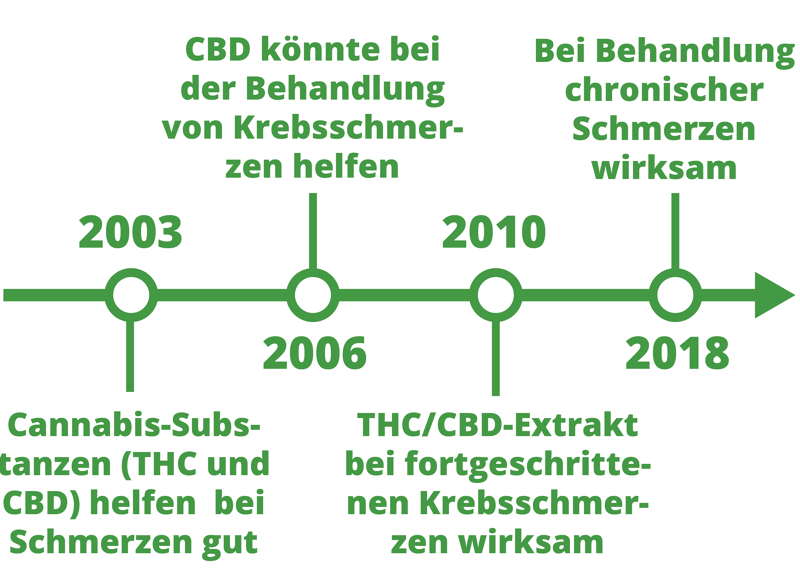 2006: Kam eine weitere Studie zu dem Schluss, dass CBD bei der Behandlung von Krebsschmerzen helfen könnte. Hintergrund war auch hier eine Kombination von CBD mit THC.