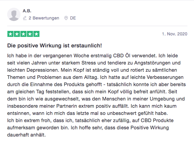 So findet man zum Beispiel auf Trustpilot und Trusted Shops tausende von Erfahrungen zu CBD.