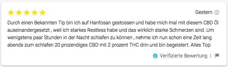 Die Anwender berichten insbesondere von einer hohen Schmerzlinderung durch das CBD Öl des Herstellers.